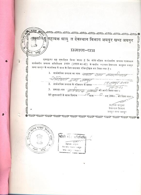 Registration Number | 14 JAIPUR 2005 Dt. 17-03-2005 |